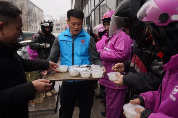 临近中午,一碗碗热气腾腾的元宵摆满了桌面,志愿者们还将热腾腾的元宵送到辖区的快递外卖站点,以及辛勤工作的环卫工人和保安师傅手中,给他们送去节日的祝福,同时不忘叮嘱他们在辛勤的工作中注意身体、防寒保暖。