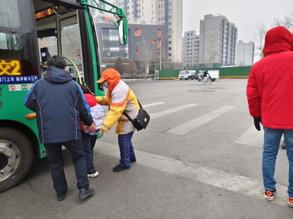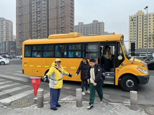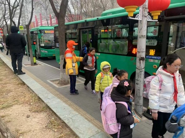 随着通学公交车的抵达,站台上的“柠檬黄”又切换到了“守护模式”。他们熟练地组织学生排成一列,引导大家践行“先下后上”的文明习惯。在清脆的哨声中,学生们有序上下车,秩序井然。这抹流动的“柠檬黄”,不仅维护了早高峰的秩序,更将文明的种子播撒在了孩子们心中。