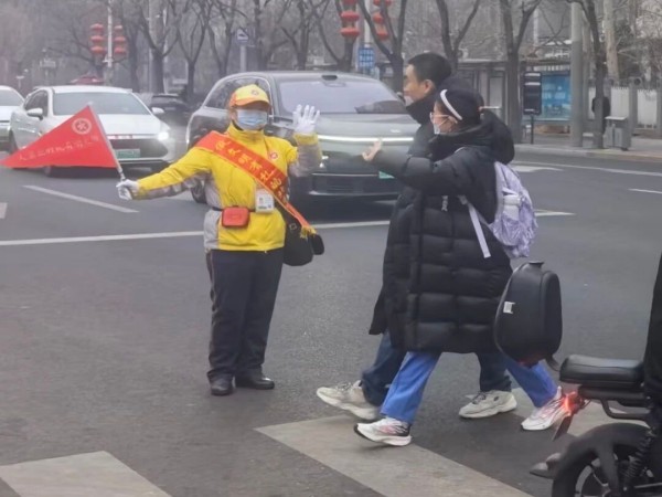 清晨,天色微亮,这群“柠檬黄”已然就位。他们不仅是交通秩序的维护者,更是孩子们过马路的“移动安全岛”。“慢一点,注意看车!”“同学们,走斑马线。”伴随着一声声叮咛,引导员们挥动小旗,示意过往车辆减速礼让,手牵着懵懂的孩童安全通过路口,用身体力行筑起一道无形的“安全护栏”。