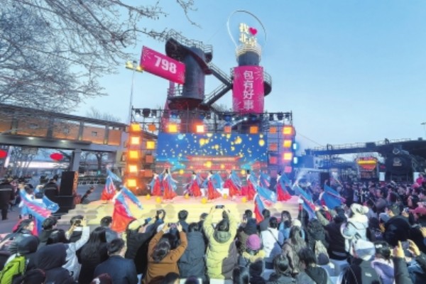 一场融合传统与当代的元宵艺术Show在798艺术区上演。园区携手中国服装设计师协会,首次将国风非遗主题秀场搬至公共街区,以工业遗址为T台,30余家商户、艺术机构与设计师品牌联袂呈现,非遗茶器、箱包、配饰与摩登时装同台亮相,传统技艺在时尚步履间焕发新生。国风舞蹈《三彩闹千灯》点睛全场,舞者化身“三彩仕女”在斑驳厂房间翩然起舞,古典韵律与现代场景交相辉映。包豪斯广场上,北京最大的千灯打卡墙扮靓氛围,灯谜融入网络热词与艺术知识,吸引年轻人驻足互动;电子广场的萌马互动、鞍上射箭,火车头广场的开“弓”仪式、骑行点亮艺术装置,更让传统年俗充满趣味,798以“非遗+时尚”为节庆文化注入新表达。