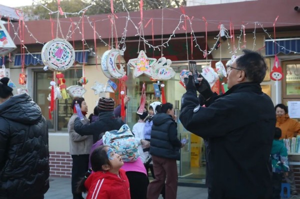 活动现场,五彩花灯高悬,节日氛围浓郁。游园会设置了多项融合传统与现代趣味的互动环节,包括考验智慧的灯谜竞猜、充满挑战趣味的套圈游戏,以及深受孩子们喜爱的非遗手工体验区。在非遗区,孩子们亲手绘制糖画、为兔儿爷和脸谱上色,在动手实践中近距离感受传统文化的魅力。与此同时,书香漂流摊位也人气十足,小朋友们通过交换分享闲置书籍,以墨香传递友爱,让知识在邻里间流动。