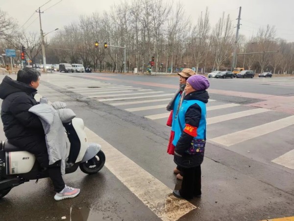 志愿者们不仅是平安的“守护者”,更是文明的“践行者”。他们定时巡查重点路段,排查安全隐患,耐心劝导不文明行为,并协助清理楼道堆物、规范电动车停放,共同筑牢社区的安全防线。在繁忙的路口与车站,他们主动为来往居民提供帮助,一句耐心的指引,一次主动的搀扶,让善意在细微处悄然传递。风雪来袭时,他们又化身“清道夫”,顶风冒雪除冰铲雪,为居民开辟出一条条“平安路”。
