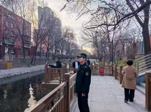近期,朝阳区二道沟河六里屯段沿线近百株山桃花已陆续绽放,粉蕊初绽、碧水映花,勾勒出独具韵味的“山桃花溪”春日画卷,吸引不少市民游客前来踏青赏花、打卡留念。为维护景区良好环境秩序,保障市民游玩安全,六里屯综合行政执法队开展专项环境秩序保障工作,坚持文明执法、贴心守护城市春日美景。