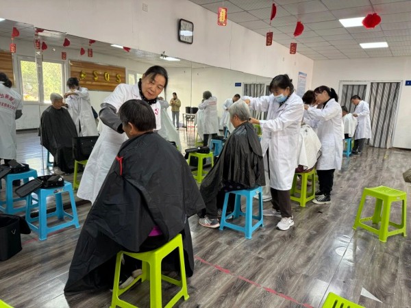 消息传开后,会些技术的居民陆续加入。如今,这支队伍已从最初的两人发展到11人,既有坚守十余年的老面孔,也有新鲜血液。67岁的退伍老兵张伯忠去年加入,受他影响,妻子陈香今年也拿起剪刀。“给外人理发,手抖。”陈香笑称第一次服务时格外紧张,但老人一句“没事,你理吧”给了她莫大鼓励。