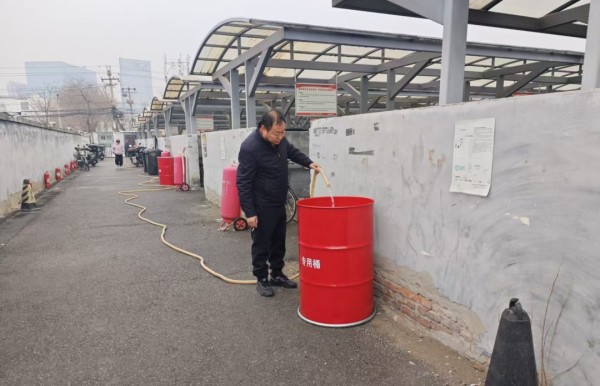 据了解,安家楼社区作为人口密集区域,电动自行车使用数量大,其充电与停放问题一度是社区治理的难点。此前,通过“疏整促”专项行动,社区已有效增设了多处集中充电点位。随着居民安全意识的提高,完善消防配套设施成为新期待。在安家楼村经济合作社的支持下,社区于3月上旬迅速启动加装工作,在村东、村西两处主要充电场同步施工,高效完成了包括消防器材专用柜、大小号消防专用桶在内的一批设施的安装,并与原有系统形成联动,确保紧急情况下能够就近快速响应。