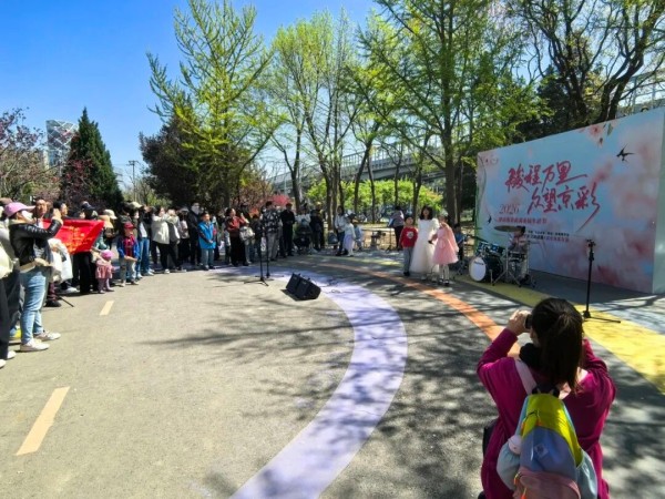 在花海掩映的群众大舞台上,一场以“骏程万里,众望京彩”为主题的音乐会悠扬奏响。经典旋律与馥郁花香交织,吸引了大量居民与游客驻足欣赏,现场洋溢着温馨和谐的邻里氛围。与音乐会同步展开的,还有一项别开生面的“打卡捡花瓣”环保行动。众多志愿者与市民积极参与,在拍照记录春光的同时,主动清理飘落的花瓣与零星垃圾,用实际行动守护美景,传递文明出游的理念。