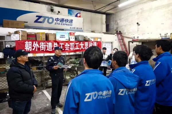为确保服务不流于形式,更贴近一线工作实际,朝外街道的“送教”服务在次日进一步升级。工作人员直接走进辖区内的快递站点,利用配送间隙的碎片化时间,进行“点对点”的精准普法与反诈宣传。交警再次结合典型案例叮嘱安全规范,平安办工作人员则专门剖析了针对快递从业者的常见诈骗套路,助力他们守护好自己的劳动成果。