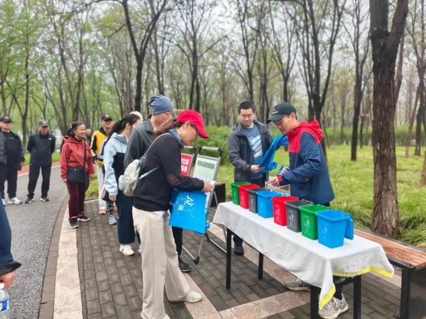 健步走也与环保宣传撞出了火花。在绿动公园和时代庄园社区,居民们结伴行走在春日绿道上,沿途不仅能学习分类标识,还能参与“分类神射手”等互动游戏,在终点打卡留念,让健康生活方式与文明环保理念并肩同行。