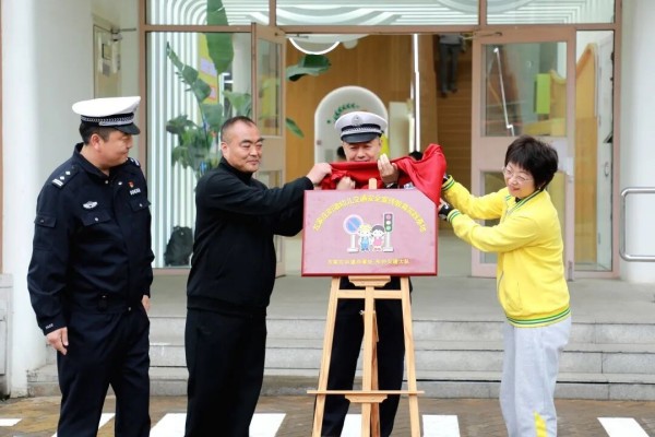 活动伊始,左家庄街道、东外交通大队与幼儿园三方代表共同为“交通安全宣传教育基地”揭牌。这一仪式标志着政警校常态化协同安全教育机制的正式建立,为后续系列活动的开展提供了坚实的阵地保障。