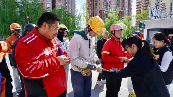 活动内容丰富多彩,兼顾了思想引领与实际需求。现场特别安排了交通安全主题宣讲,来自双桥交通大队的警官结合即将实施的《北京市非机动车管理条例》,为骑手们详细解读了新规要点与安全骑行规范,通过案例分析强调了文明出行、平安归家的重要性。在随后的互动环节,青年代表们通过诗歌朗诵,分享了工作中的感人瞬间与成长感悟,展现了新时代青年吃苦耐劳、乐观向上的精神风貌。活动还特别设置了创意互动墙,参与者可将写有“平安回家”“多跑几单”等朴素心愿的纸飞机贴上“翅膀”背景墙,寓意放飞梦想,逐梦前行。