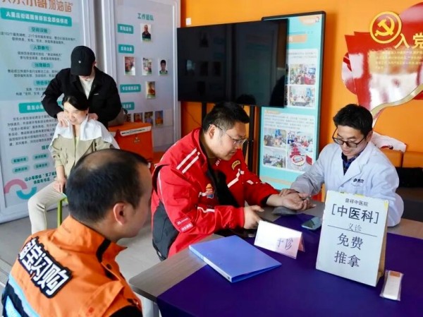 此外,活动充分考虑了新就业群体的实际需求,现场提供了包括中医义诊、推拿理疗、血压血糖检测在内的“一站式”便民健康服务,让平日奔波的骑手小哥们得以放松身心,感受到实实在在的关怀。通过“趣味创意调研”板块,街道也精准收集了青年们在工作和生活方面的期盼,为后续提供更精准的服务奠定了基础。