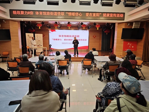 在重阳佳节温馨而至之际,为进一步弘扬中华优秀传统文化,丰富侨届群众精神文化生活,10月22日下午,体育馆路街道侨联在驹章胡同社区服务站,组织开展“情暖侨心 爱在重阳”健康宣传活动,将关心关怀送到侨界群众身边。