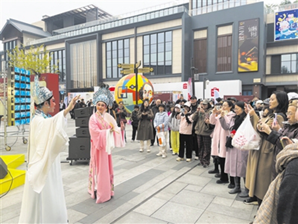住在隆福寺周边胡同里的周大爷,对着身着戏服的“红楼人物”难掩喜爱:“我最喜欢《红楼梦》这样的经典戏剧,没想到在家门口就能和‘戏中人’站在一起合影,太有纪念意义了!”在附近工作的“00后”小宋,下班途经时恰好赶上一场即兴戏剧片段展演,她惊喜地掏出手机记录:“以前总觉得看戏是‘剧院里的事’,没想到在每天路过的街区里就能近距离感受戏剧的魅力,这种体验真的太酷了!”
