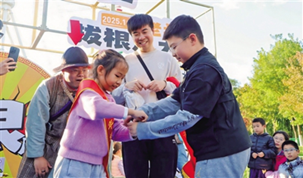 现场,百余名市民游客积极参与,唤醒了众多人的儿时记忆。经过一下午的激烈角逐,第三届老北京“拔根儿”大赛的“根儿王”脱颖而出,并从上一届“根儿王”的手中接过了象征荣誉的“流动红旗”。