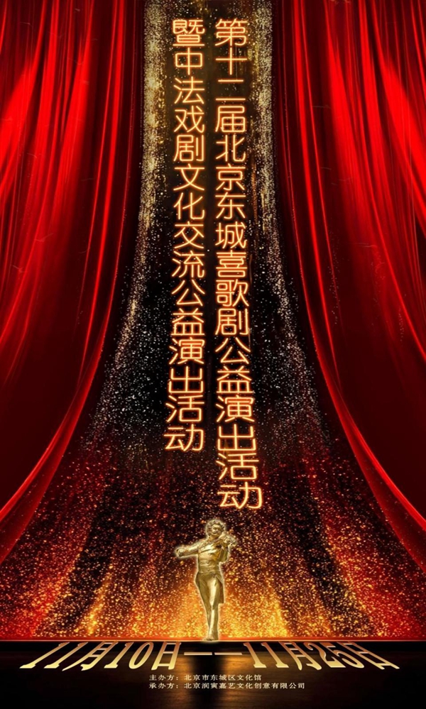 第十二届北京东城喜歌剧公益演出活动和中法戏剧文化交流公益演出活动于2025年11月10日至11月25日在东城区文化馆举办,该活动是“戏剧东城”文化品牌的重要项目,由东城区文化馆主办。