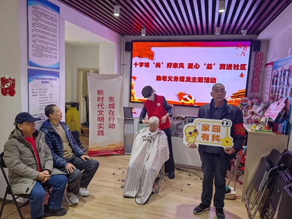 近日,东直门街道十字坡社区开展“爱心‘益’剪进社区”助老理发活动,联合街道养老院为老年人提供免费理发服务。