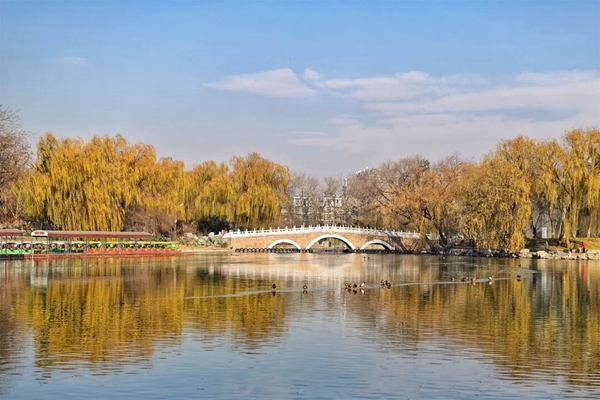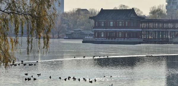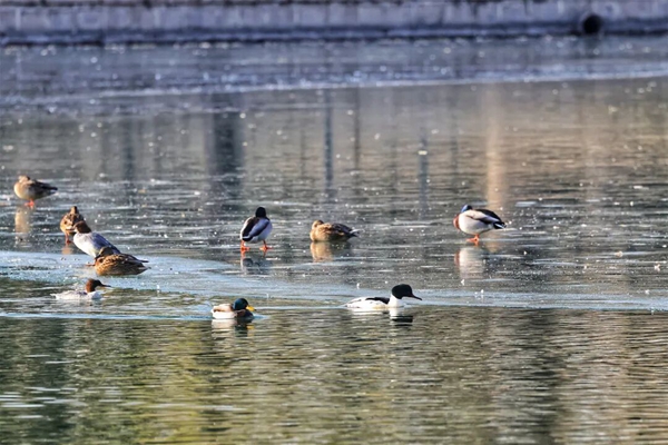 薄冰渐凝,候鸟翩跹,绿意未褪。这方水域见证着东城生态的细腻守护与蓬勃生机,也让每个在此驻足的人悄然融入这幅冬韵流转的画卷中。