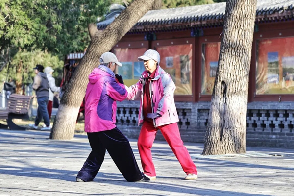 晨光里,几位市民正缓缓起式,太极拳的圆融轨迹与天地节律相合,吐纳间白气氤氲,人与园共呼吸。