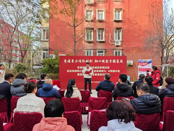近日,东城区首个信托制物业项目落地建国门街道。建国门街道相关负责人、社区工作人员、小区业委会、居民代表、首华物业团队及行业专家齐聚,共同参与现场签约仪式。此次签约覆盖东总布胡同2号楼和小羊宜宾3、4号楼,这处建成于1989年、有322户居民的多产权老旧小区,自此开启物业治理新阶段。
