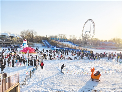 记者从龙潭中湖公园北门步入园内,一抬头便看见“撒欢儿雪乐园”售票处排起了长队。步入雪乐园,仿佛闯入冬日童话世界:百余米长的雪圈大滑梯上,市民游客乘彩色雪圈飞驰而下;不远处的“雪地摩托火烈鸟”赛道上,家长抱着孩子驾驶萌趣造型的摩托快乐前行;在网红樱花树雪地转转区,雪圈化作“躺椅”,孩子们坐在上面体验飞一般的感觉。