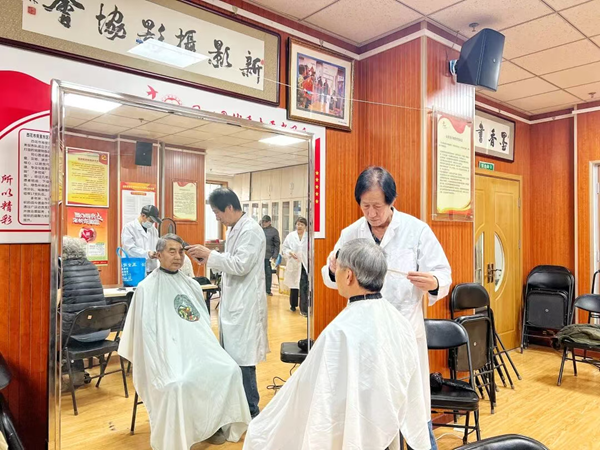 除了墨香书画社,以退伍军人为骨干的同心圆磨刀剪组同样亮眼。队长武增银带领团队用废旧排油烟机、洗菜盆改造流动磨刀设备,十年间为居民磨剪4000余把,填补了“磨刀难、磨刀贵”的民生短板;同心圆理发组接力传承,韩阿姨最初的一句公益承诺,经杜凤林师傅等人接续,十年公益理发3000余人次,为行动不便的老人上门服务,顺手打扫房间、陪老人聊天,让志愿服务更有温度。