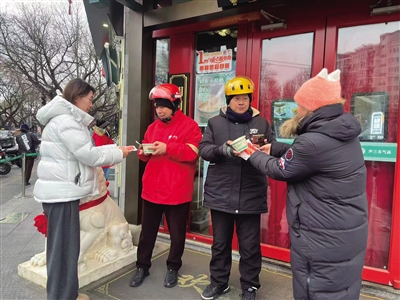 “天气冷,喝杯热豆浆暖和一下!”清晨的北京寒意袭人,在尹三豆汁(交道口直营店)门口,安定门街道工作人员与商户志愿者正忙着为往来的户外劳动者分发热豆浆。不到半小时,数十杯热气腾腾的豆浆便全部送到了快递员、外卖骑手手中。一位刚停下车的骑手接过还冒着热气的豆浆,哈着白气笑着说:“没想到路上还能收到这样的温暖,喝一口浑身都热乎了,感觉再跑多少单都有劲儿!”
