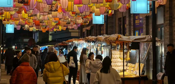 美食荟的魅力不仅在于风味多样。街区为摊位统一接通水电,配备油烟净化设备,让商户实现“拎包入住”;百余套露营帐篷、外摆桌椅搭配夜间亮化装置,星星点点的串灯与巍峨城门相映成景,户外暖气更驱散了冬日寒意,让游客愿意放慢脚步,在街巷间细细探寻。
