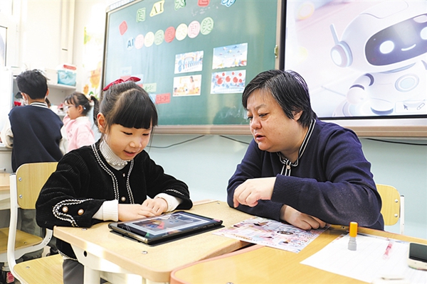 东城区东四九条小学将AI融入二年级语数英期末学业展示活动。语文学业展示活动设计AI主题问题情境,引导学生在沉浸式体验中运用语文知识完成任务和闯关挑战;数学学业展示活动以人工智能为主题,设计“分类展示厅”“乘除速算站”“长度测量屋”“方向导航馆”“应用挑战台”五大环节;英语学业展示活动中,AI守护精灵——“星宝”的语音引导贯穿活动全程,“AI美食分类卡”“穿搭推荐卡”等特色道具吸睛十足,学生们在认读、表达、合作闯关的过程中巩固了词汇与句式。
