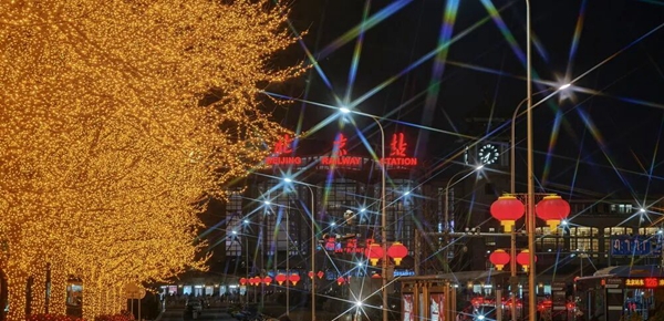 新春将至,北京站前街夜色如画。节日灯光悉数点亮,璀璨光影将长安街沿线妆点得格外喜庆。