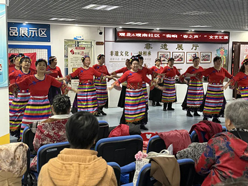 演出现场热闹非凡,节目形式多样,涵盖了民族舞、新疆舞、快板、合唱等多种艺术形式。欢快的舞蹈跳出了春天的活力与生机,激昂的快板诉说着社区的发展与变迁,悠扬的合唱传递着居民们对美好生活的热爱与向往。演员们身着绚丽的服装,以饱满的热情和精湛的技艺,为观众们呈现了一场精彩绝伦的演出。