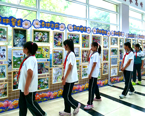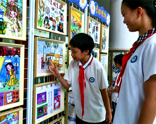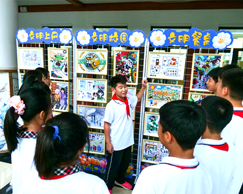 在首都文明校园—北京景山学校大兴实验学校展出期间,学生们通过现场观看绘画作品、分享“身边的文明行为”、撰写心得感受等形式,感悟文明内涵。有的孩子看到自己的作品参展,惊喜不已。大家纷纷表示,以后要以实际行动践行文明行为,传递文明新风尚。