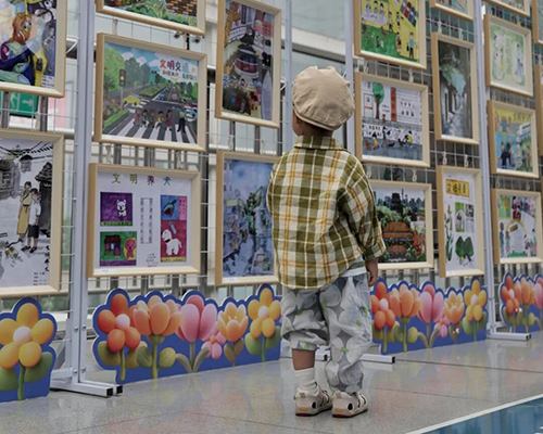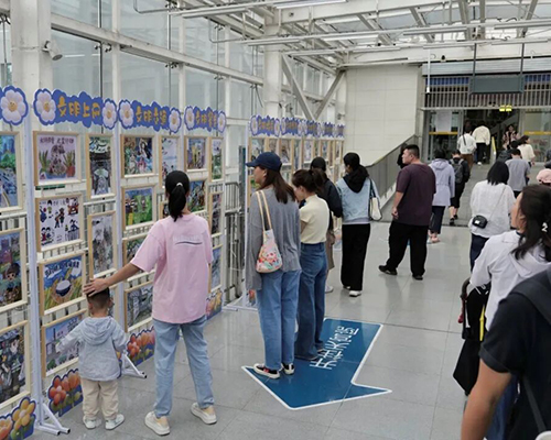 文明画展 进地铁 在地铁西红门站连廊展示区,乘客们纷纷驻足欣赏,带着孩子的家长们,一边看展一边给孩子们讲解画作背后的文明故事,将公共空间变成了流动的“文明课堂”,为通勤乘客增添了温暖亮色。