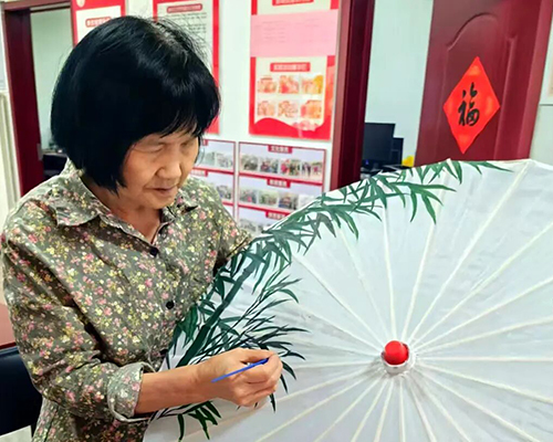活动现场,在老师的指导下,居民们首先了解了油纸伞的历史沿革和制作工艺。随后,大家提笔蘸墨,在洁白的伞面上精心绘制梅、兰、竹、菊等经典图案。一笔一画间,不仅勾勒出了花草的灵动神韵,也寄托了对美好生活的向往。当一把把承载着个人创意的油纸伞完成时,仿佛撑开了一个个浓缩着传统文化的小小世界。