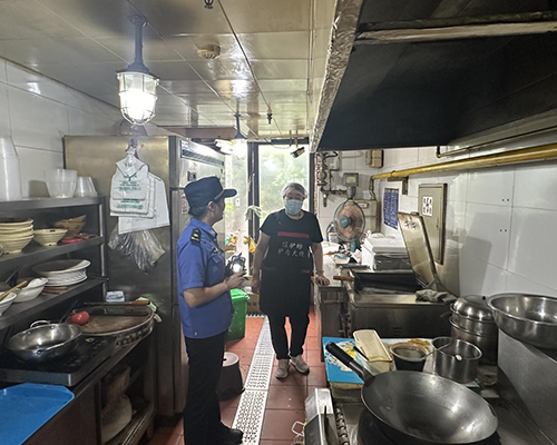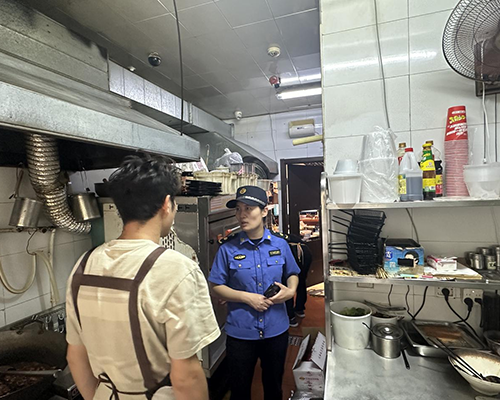 执法人员深入辖区餐饮场所后厨,通过边检查、边普法、边指导的方式,重点对场所内燃气报警装置是否正常运行、燃气管道是否违规悬挂物品、燃气软管是否超过使用年限等情况进行检查。针对检查中发现的问题,执法人员提出整改意见,督促负责人立即整改,及时消除安全隐患。