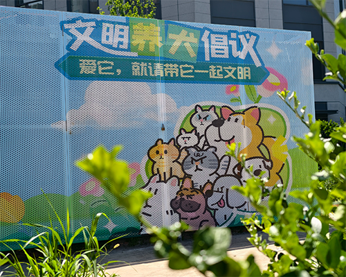 在悦景苑社区,原本单调的墙面经过居民的创作,变成了一幅幅生动的画卷。党建品牌“善成黄村·悦来悦好”与向日葵、气球相映成趣;彩虹步道与花朵,让人仿佛踏进了彩色花园;垃圾分类主题区则通过“萝卜蹲”互动小游戏,让环保知识寓教于乐;万花筒彩绘墙里藏着社区的温暖瞬间,文明养犬墙延伸出的真实绳段让居民可触摸、可互动。