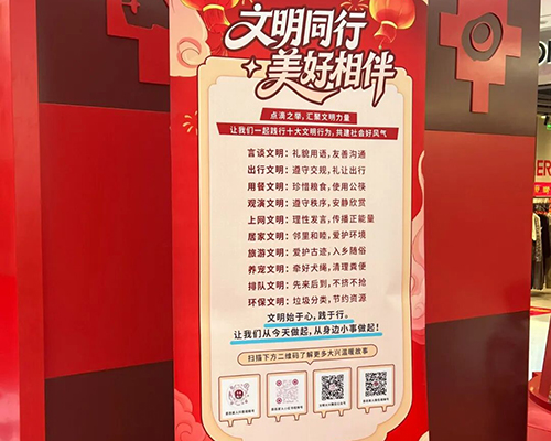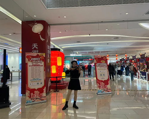 为弘扬向上向善的社会风尚,倡导“大兴STYLE”社会好风气理念,春节前,区委宣传部(区文明办)在上德银泰城、龙湖大兴天街两大商圈,开展“文明花开新国门 雅乐传韵颂文明”主题宣传活动3场,吸引众多市民驻足参与,让文明新风浸润国门新城。