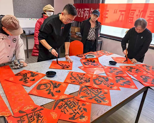 采育镇荣墅社区“笔墨传福·春联贺春”活动现场,一派喜气洋洋的景象。书法老师们笔走龙蛇,一句句吉祥如意的话语跃然纸上,一张张浑厚饱满的“福”字映着居民的笑脸,红纸金墨间,流淌着浓浓的乡情与暖意,凝聚着团圆喜乐、吉祥安康的新春气象。街坊邻里纷纷品评墨韵、交流祝福,欢声笑语不绝于耳。此次活动以春联和福字为纽带,不仅将真挚温暖的祝愿送入千家万户,更让传统年俗在笔墨交融、祝福传递中焕发新生。