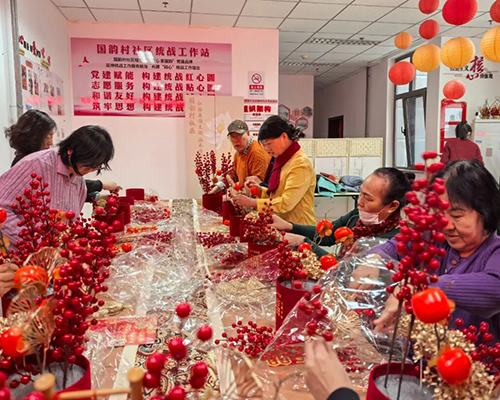 旧宫镇国韵村社区开展“巧手插福桶 喜迎幸福年”新春手工活动,现场暖意融融、年味十足。社区工作人员提前准备了红色福桶、银杏叶、红果、金叶、福字挂件、吉祥配饰等材料,并详细讲解福桶的文化寓意、插花技巧与搭配要点。居民们兴趣盎然,在耐心指导下亲手选材、构思、插制,将鲜艳的花材与喜庆的配饰巧妙组合、精心固定。一个个独一无二、寓意吉祥的节日福桶在欢声笑语中相继诞生。此次活动巧妙融合传统年俗与手工体验,不仅装点了家园、烘托了节日气氛,更促进了邻里交流,加深了社区归属感与温情。