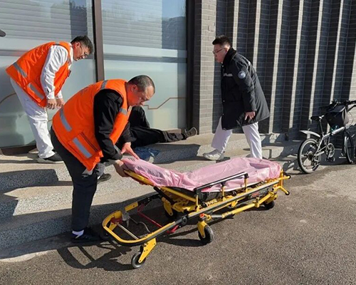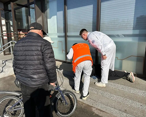 焦文杰一个箭步冲上前去。此时老人意识模糊、言语不清,情况万分危急。虽然老人嘴里念叨着“没事”,但焦文杰凭借高度的责任心迅速做出判断:必须立即施救!他来不及多想,转身便火速奔向仅一墙之隔的急救中心,寻求专业支援。