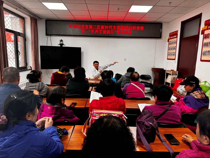 12月1日是“世界艾滋病日”。为做好预防艾滋病宣传工作,进一步加深辖区居民对艾滋病的认知,帮助居民树立正确健康生活理念,增强自我保护意识。近日,向阳街道富燕二社区开展主题为“社会共治,终结艾滋,共享健康”的健康知识讲座。
