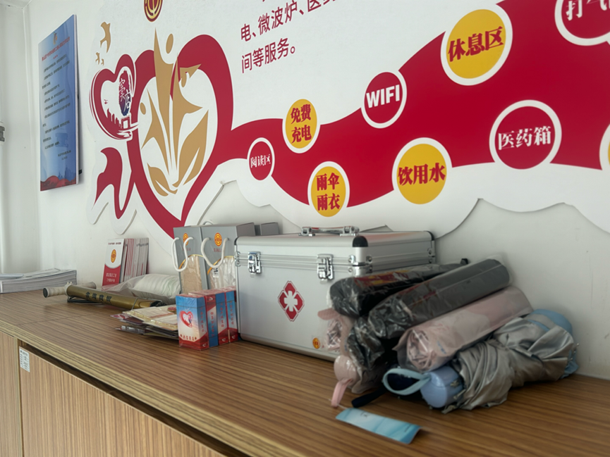 窦店镇围绕劳动者所需、所盼,精心打造暖心驿站,为户外劳动者“遮风挡雨”。今年,窦店镇共建立8处户外劳动者暖心驿站,服务外卖送餐员、快递员等新业态新就业群体及环卫工人、货车司机等其他户外劳动者,驿站配备了饮水机、微波炉、休闲座椅、充电插座等基础设施,还有应急药箱、共享雨伞等应急设施,提供了“可取暖、可纳凉、可饮水、可歇脚、可用药”等多样化暖心服务,驿站具体地址可在“职工之家”APP中搜索。