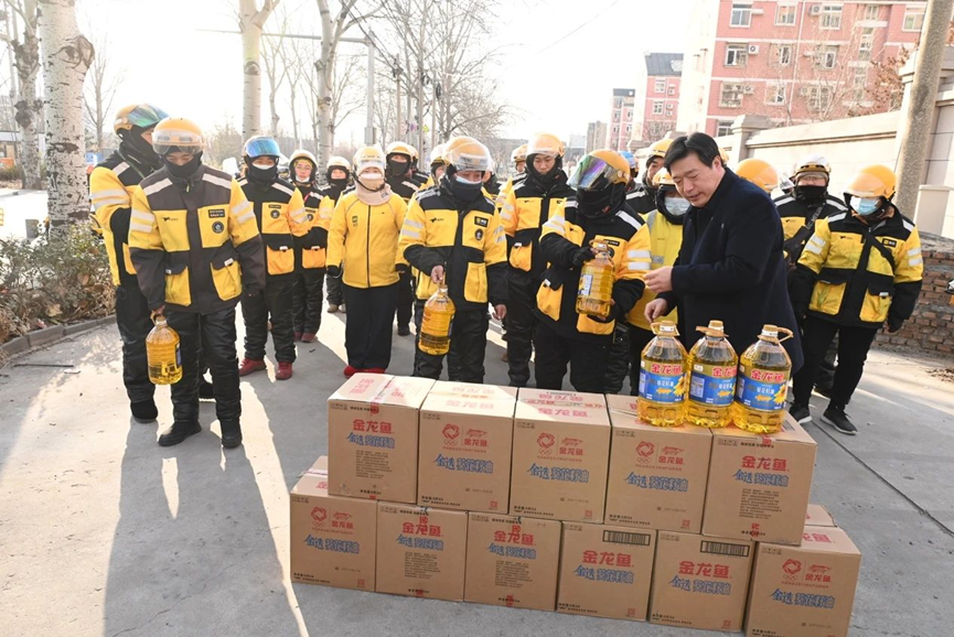 寒冬已至,“两节”临近,窦店镇近日发起关爱新就业群体“温暖行动”,对辖区内56家建会企业一线户外职工和16家新业态企业共计451名工作人员进行慰问,发放慰问品近4000份。活动中,窦店镇主要领导亲切的和快递小哥们交流互动,了解他们的工作和生活情况,提醒大家注意健康和安全,肯定了大家在民生服务方面做出的贡献。小哥们表示:“感谢镇党委和政府的关心关怀,时刻想着我们,让我们从心底体会到了温暖。”