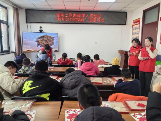 2月10日,向阳街道富燕二社区未成年人活动站开展“蛇年DIY纽扣画”手工制作主题活动,通过运用五彩斑斓的纽扣、画布、胶水等材料,亲手DIY独一无二的蛇年纽扣画吉祥图案,在实践中锻炼了孩子们的动手能力,激发他们的艺术潜能,为他们度过一个充实而有意义的假期生活提供有益支持。