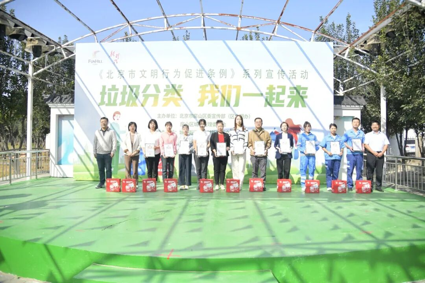 活动还对在垃圾分类工作中表现突出的达人进行表彰,以此激励更多市民积极参与到垃圾分类行动中来。同时,城关街道东坟村向全区发出文明倡议,倡议全体市民自觉践行《北京市文明行为促进条例》,主动参与垃圾分类,争做文明行为的践行者、传播者,共同建设文明房山。