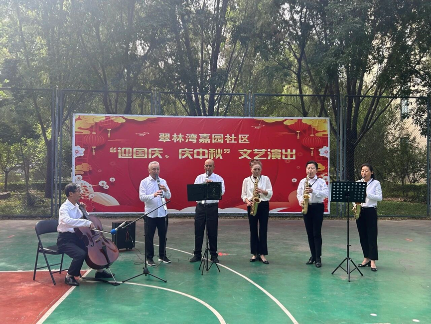 翠林湾嘉园社区、瑞雪春堂社区、胜茂嘉苑社区、安盛家园社区、绿地花都苑社区、智汇雅苑社区等社区举办了“迎国庆 庆中秋”主题文艺演出活动。活动现场人头攒动,欢声笑语不断,洋溢着浓浓的节日气息。活动中,居民们带来的特色节目依次登场,涵盖民乐、武术、舞蹈、乐器表演、合唱多种形式,每一个节目都展现着社区居民的风采与情怀。活动现场,歌唱与舞蹈节目精彩不停,居民们或用嘹亮歌声传递爱国情怀,或凭优美舞姿展现时代风貌,将现场热烈氛围推向高潮。最后的大合唱以饱含深情的歌声致敬英雄土地与伟大时代,为整场汇演画上圆满句号。
