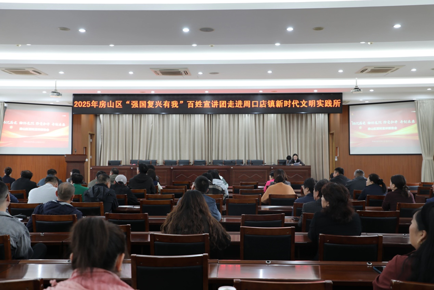 10月10日,房山区“强国复兴有我”百姓宣讲团走进周口店镇,在镇新时代文明实践所举办“铭记历史、缅怀先烈、开创未来”主题演讲会,镇村干部群众代表80余人参加。