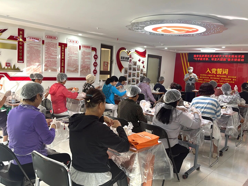 房山区长阳镇稻香悦家园社区开展“巧手做月饼・邻里共团圆”主题活动。活动正式开始后,专业月饼制作老师先与居民们共话中秋起源,详细介绍月饼的来源、种类和特点,随后重点讲解传统月饼的制作流程和关键要点,还现场演示饼皮制作,分享材料比例搭配的技巧。工作人员将做好的饼皮、馅料和模具分发给每位居民,大家纷纷动手揉面、包馅、压模,每个步骤都在欢声笑语与默契合作中顺利完成。