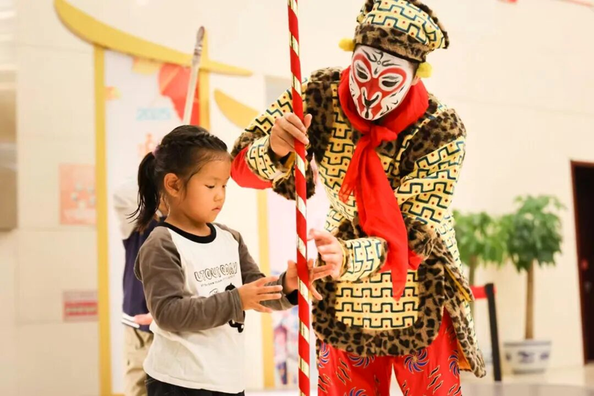 活动特邀中国戏曲学院毕业的陈伟隆讲师主讲,陈老师深谙京剧 “毯子功”“把子功”,擅长将专业知识通俗化,助力零基础居民深切感受猴戏与武生艺术的独特魅力。活动围绕专业展演、道具实操、趣味互动展开。文化导入环节,陈老师身着猴戏服,演示“棍花”“猴子吃桃”等经典动作,再结合《闹天宫》解析京剧文化,通过互动问答深化居民理解;互动展演环节,居民们亲身模仿“孙悟空”姿态、聆听行当知识,亲手触摸戏曲单刀、把子等道具,沉浸式体验感十足。