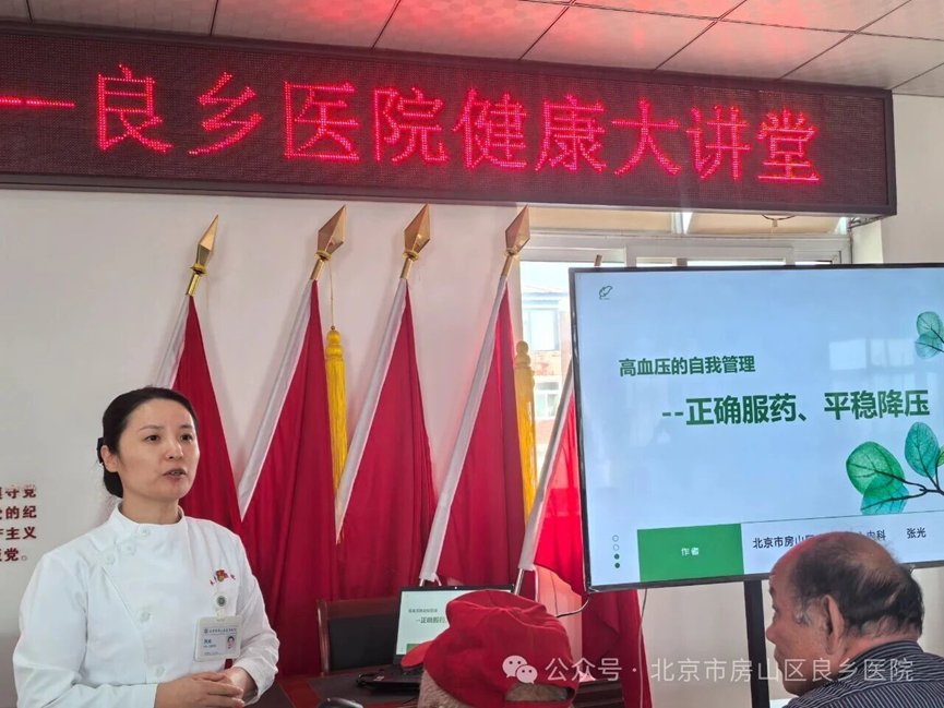 心内科张光护士长以“高血压的自我管理”为主题,开启了一场细致入微的知识讲解。她从如何识别高血压、高血压患者的正确服药方法讲述,并提供了专业的家庭自测血压指导,多维度的讲解,为村民们打开了高血压自我管理的知识大门。