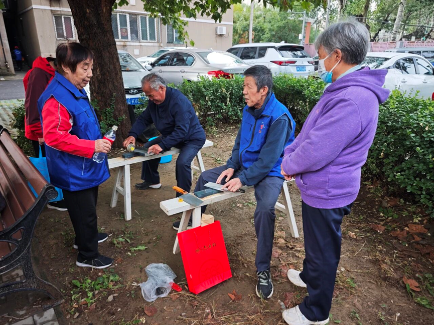 活动现场秩序井然:医疗卫生组成员已开始为居民免费测量血压、血糖,耐心解答有关慢性病管理和季节性保健的疑问,并针对高血压、糖尿病等常见病症提供个性化建议;日常维修组前排起了队,志愿者手持刀具,在磨刀石上反复打磨,“嚓嚓”声此起彼伏,不一会儿,一把把刀具便焕然一新、锋利如初。